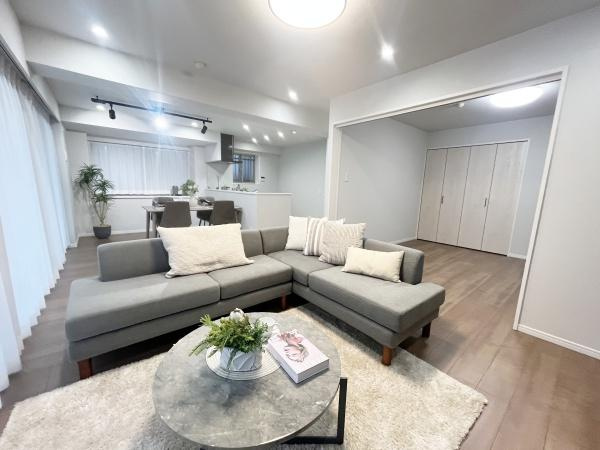 リビングは明るく広々としております。 窓も二重サッシになっておりますので外の音も気にならないと思います
