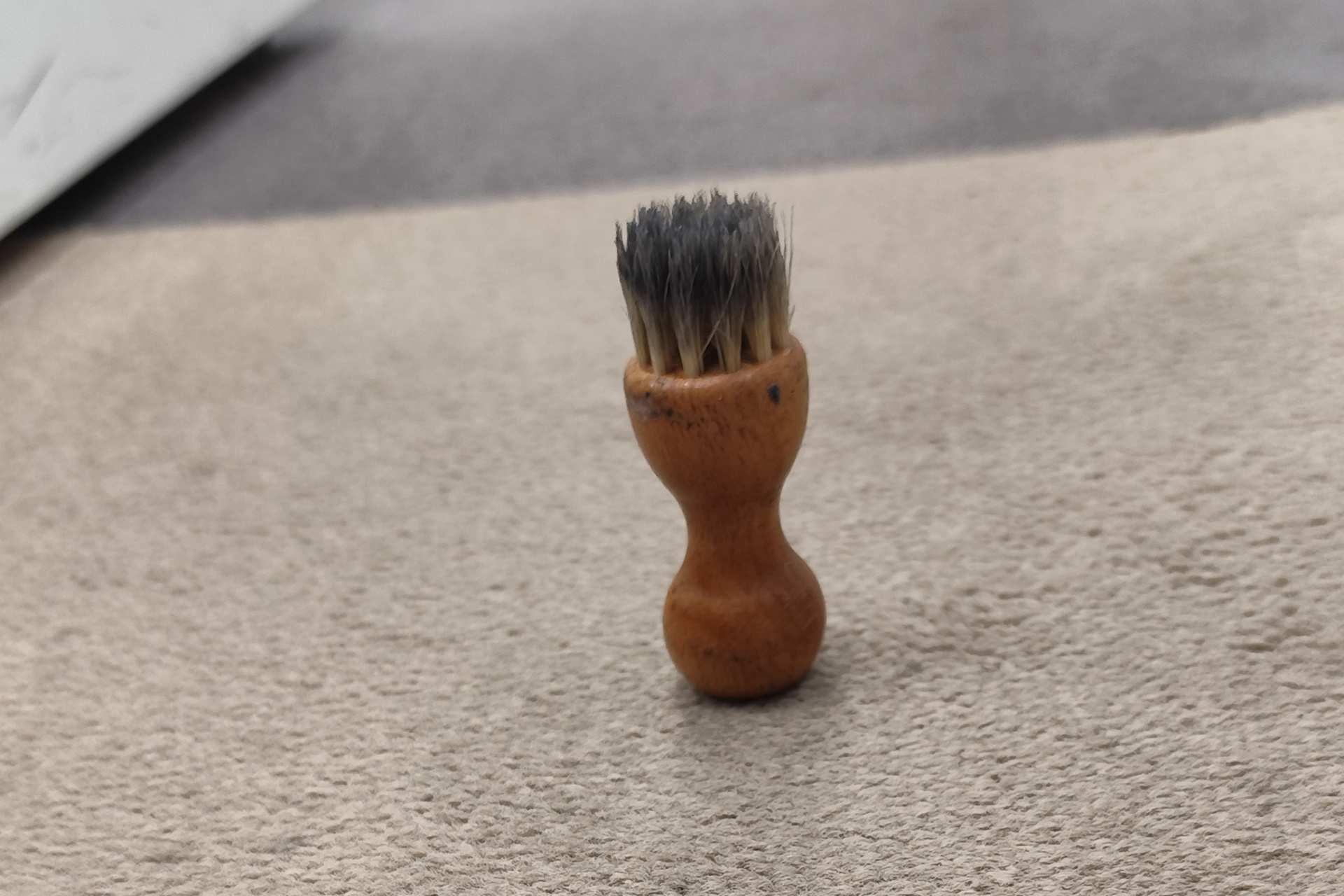 2.外側をブラッシングで汚れ埃を取ります。できれば柔らかい馬毛のブラシが良いようです。ゴバと呼ばれるアッパーと靴底の隙間を丁寧にブラッシングします。