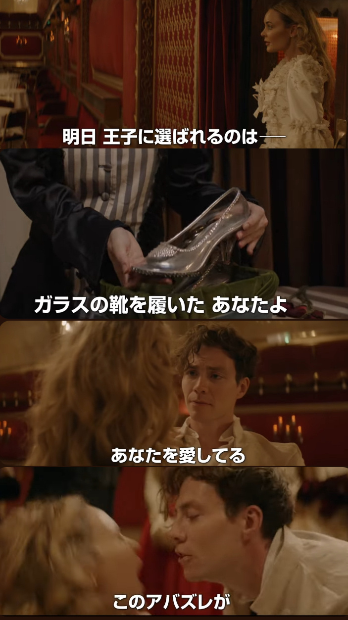 シンデレラのストーリーを進める為に重要な小道具を凶器として象徴化するセレクト、喜劇の小道具を悲劇の凶器へと変える洒落っ気には素直に脱帽です。
