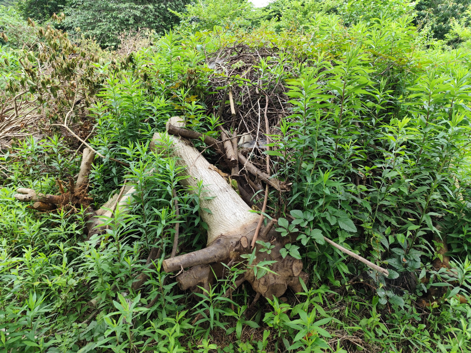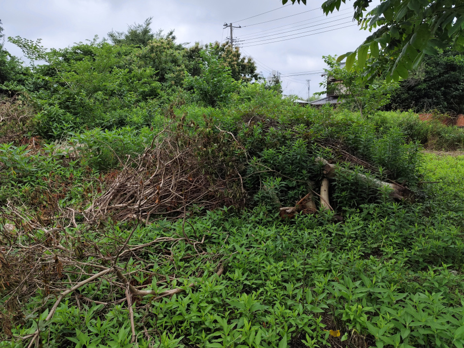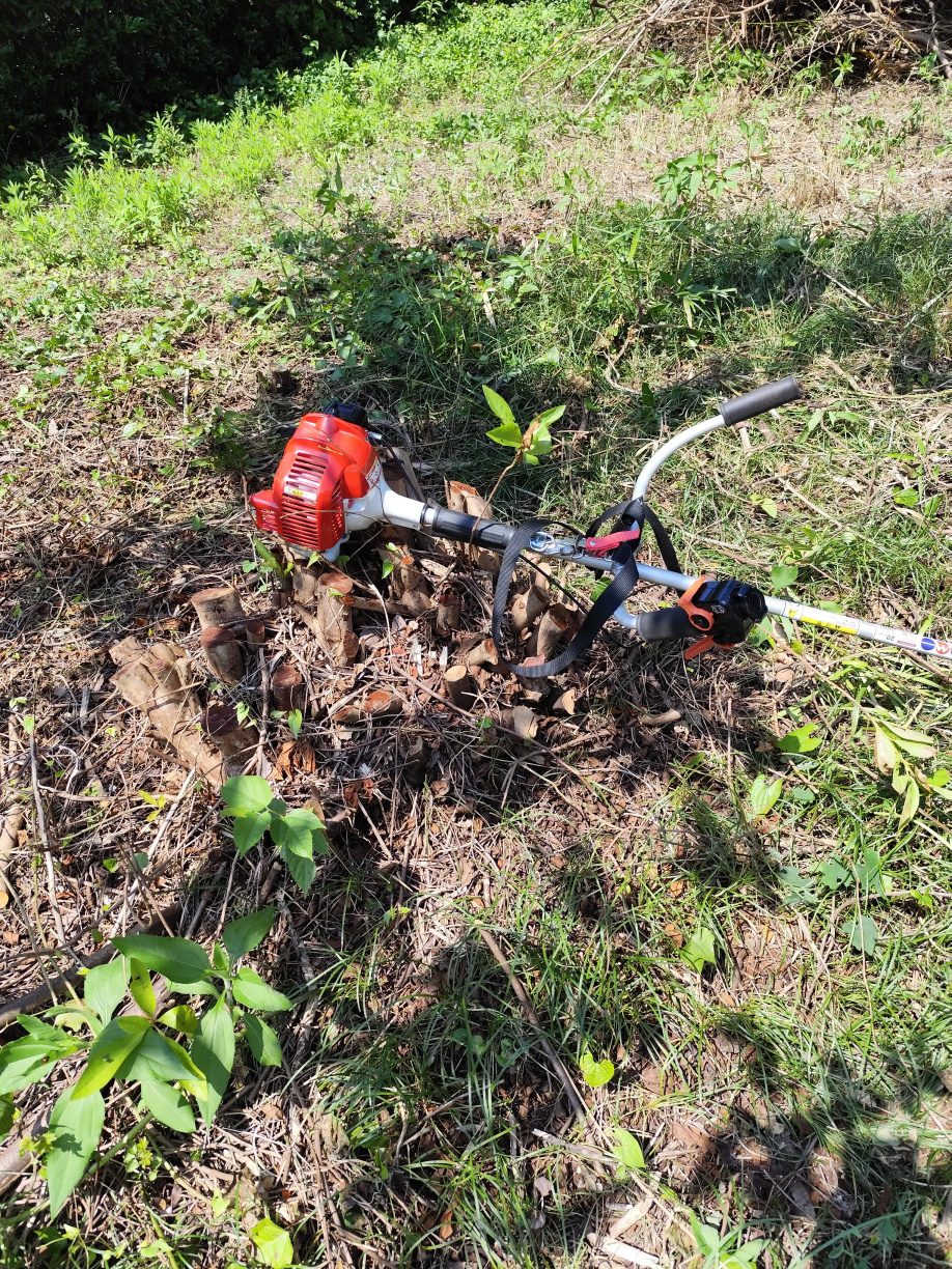 電動鋸で大量の雑草を刈り取りました。