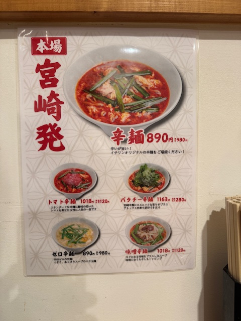 宮崎県発祥の辛麺専門店らしく、メニューには辛さレベルがずらりと並んでました。