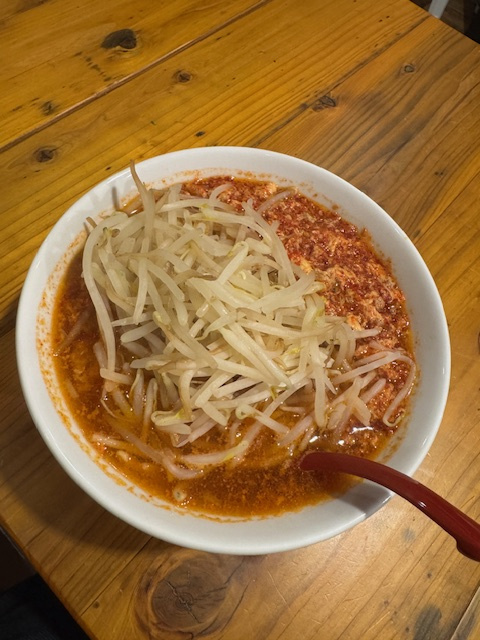 今回はもやしをトッピングしたのですが、シャキシャキとしたもやしと、辛いスープの相性がよく、とても美味しかったです!