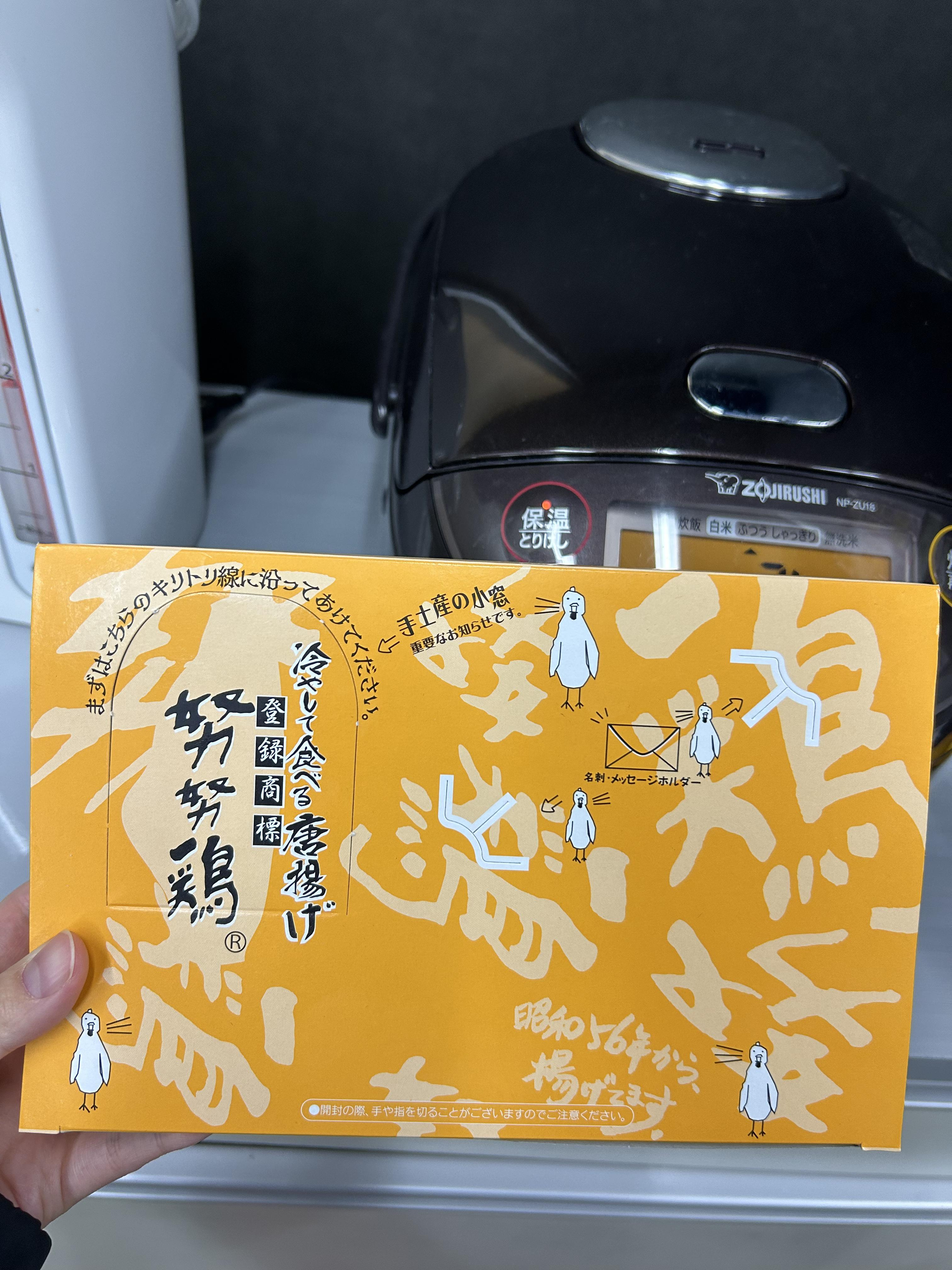 今回のお土産は今までと趣向を変えて明太子と「努努鶏」となんばん往来を買いました。