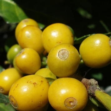 通常、コーヒーの実は赤い実を付けるのですが、この品種は黄色い実を付けます。