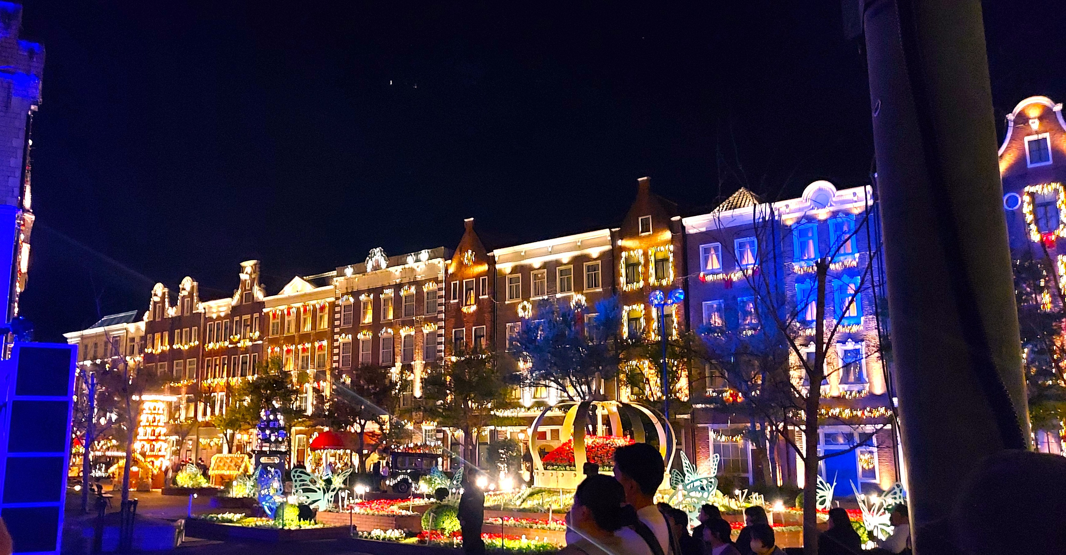CMでやっていたツリーへの点灯式や、水と花火を使ったイベントもたくさんあって
